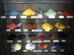 - des oxydes minéraux de différentes couleurs (0,6 g d'ocre jaune, 0,3 d'ocre rose 0,6 g d'oxyde minéral marron et 0,9 g de poudre de châtaignier